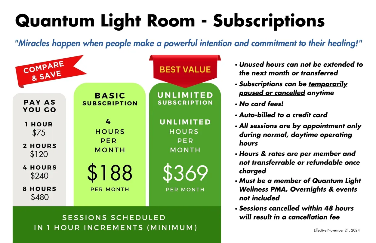 The Quantum Light Room | Daytime Member Rates & Packages